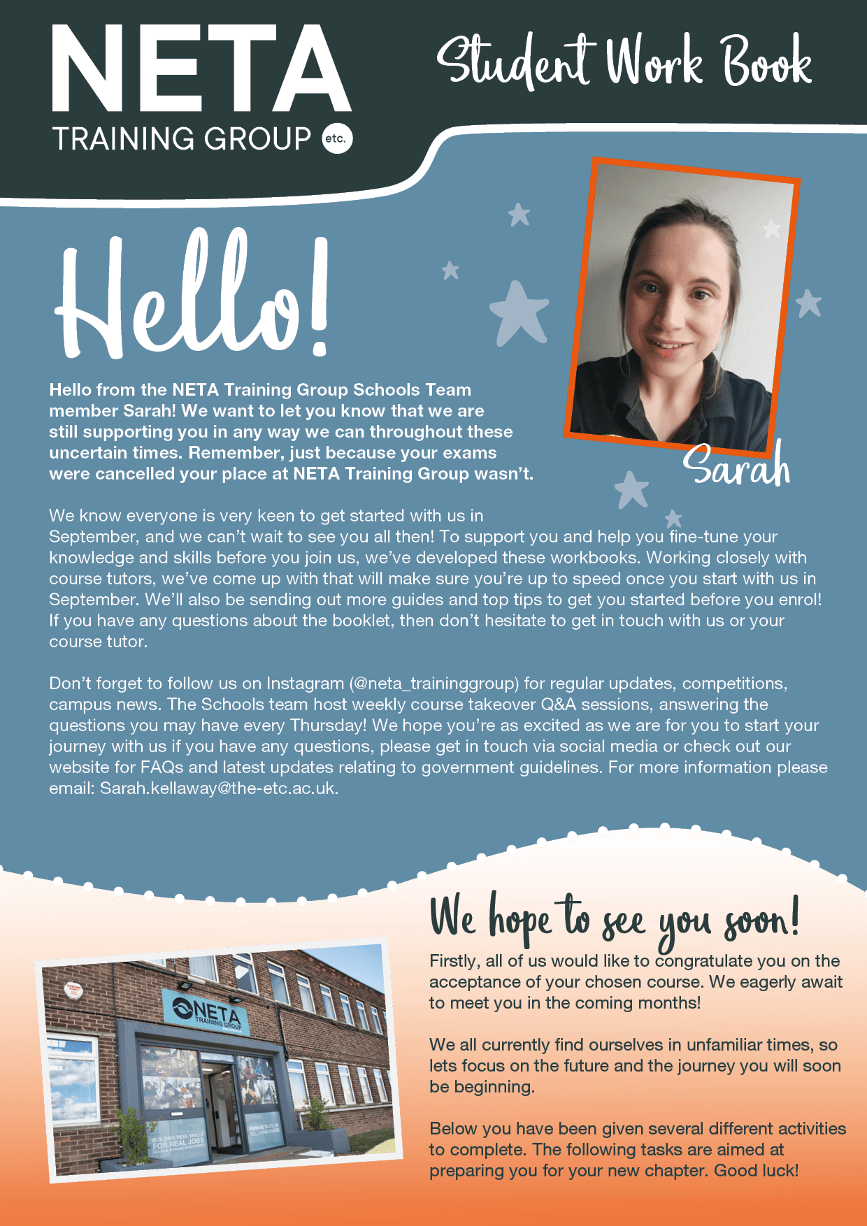 Prepare for your start at NETA with our course area worksheets that are designed to get you ready for further education.