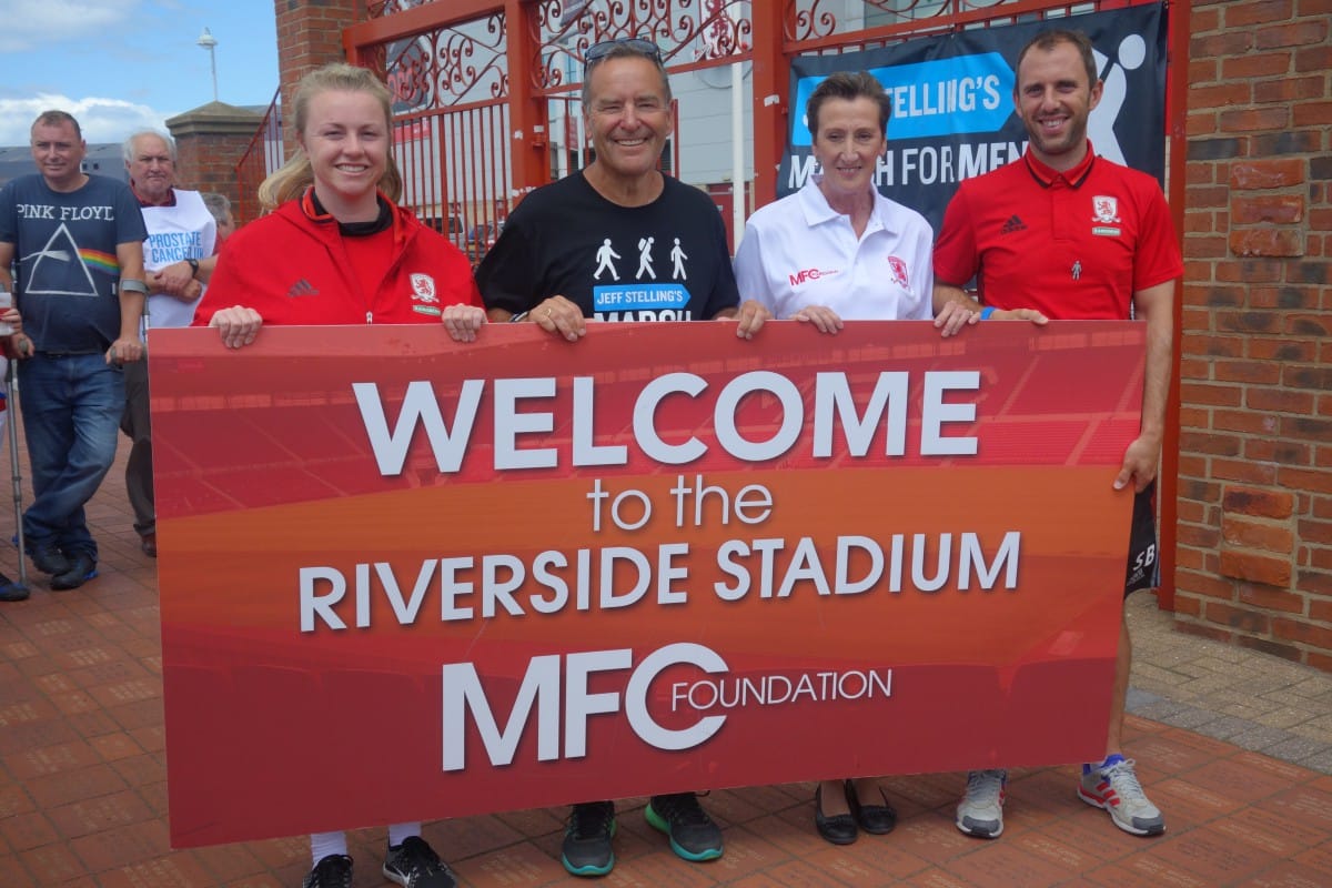 Tackling 27.3 miles in one day, a team of volunteers walked with Jeff from Darlington Football Club to Middlesbrough FC and then on to Hartlepool United as they raised money for Prostate Cancer UK.